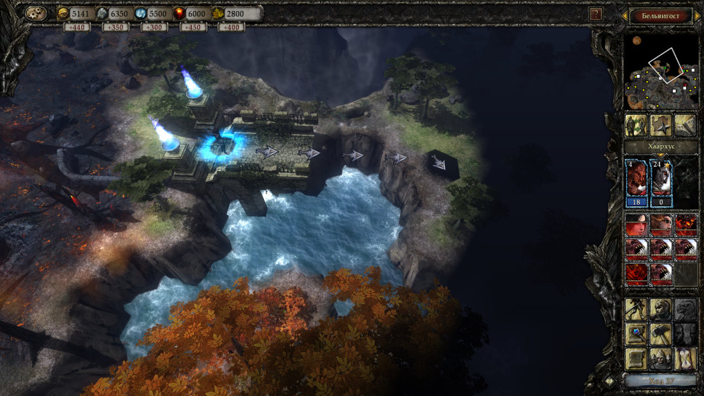 Теперь в бою разрешили применять магию, причём кастовать её можно хоть каждый ход – были бы в наличии соответствующие одноразовые руны. Т.е. колдовать, получается, может любой юнит, будь то захудалый крестьянин или какой-нибудь зомби. Порой логика создателей неисповедима. Добавилась «геройская» панель инициативы, показывающая очередность ходов. Удобно, конечно, но делает битвы ещё более похожими на сами знаете какие. Нельзя забывать и про камеру, которая в плане неудобства является достойным конкурентом оной на глобальной карте. И тут придётся её или отдалять так, что бойцов станет особо не отличить, или же двигать по игровому полю, дабы лицезреть его частями. Из интересного в новых битвах я бы выделил лишь появление случайно генерируемых клеток, на которых усиливается атака определённых существ. Всё остальное – мрак и ужас, о котором и говорить не хочется, но в целях объективности надо. Последний гвоздь в крышку гроба этого недоразумения забивает так называемый «быстрый бой», который мало того что на самом деле оказался очень даже медленным, так и наши воины под управлением компьютера ввиду слабого ИИ вытворяют такие фортели, что пользоваться этим режимом можно исключительно на свой страх и риск. Отдельного пинка заслуживают битвы за замки, представляющие собой всё то же самое, но только с ямой посреди игрового поля. Круто, не правда ли? На самом деле, конечно же, нет.
