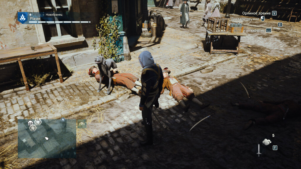 Пожалуй, стоит рассказать про основной геймплей, который принципиально особо не изменился. Открытый мир, наполненный важными и не очень миссиями, которые мы проходим на манер какой-нибудь GTA, путём посещения «горящих» на мини-карте буковок. Разве что машин нет, да и лошади с кораблями остались в предыдущих играх серии. Но в передвижении помогают паркур и «быстрое перемещение» в открытые ранее районы, так что отсутствие «средств мобильности» не слишком расстраивает. Кстати, паркур немного прокачали, добавив возможность «аккуратного» спуска с практически любой крыши простым зажиманием кнопки при беге. Новшество удобное. Часто по ходу игры предстоит сражаться, применяя холодное и огнестрельное оружие. Боевая система усложнилась, и, будучи совсем «зелёным», победить самых подготовленных стражников будет затруднительно. По мере прохождения мы станем опытнее как игрок, научимся своевременно использовать контратаки и увороты, применять пистолеты и дымовые бомбы в пылу боя, а господин Дориан под нашим чутким руководством повысит уровень и станет значительно сильнее.