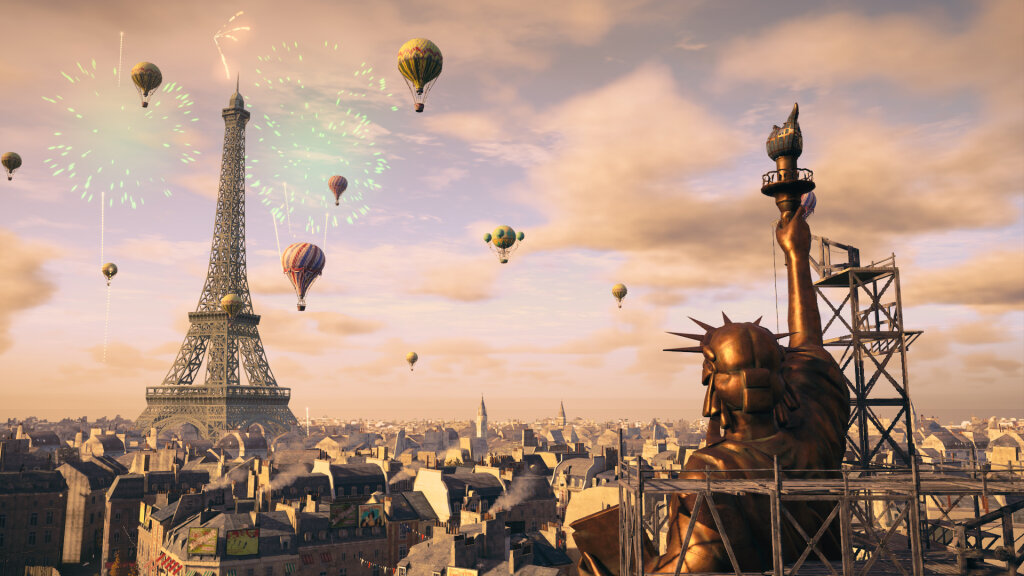 Из наиболее интересных дополнительных активностей остались уровни-разломы и кооперативные миссии. Начну с последних. Кооперативные миссии – это такие достаточно большие задания с отдельным небольшим мини-сюжетом и конкретными задачами. Их выполнение от «штатного» геймплея отличается лишь возможностью кооперативного прохождения (от 2 до 4 игроков) и наличием на уровнях предметов, необходимых для прокачки. Уровни-разломы сюжетно обосновываются сбоями в программном обеспечении (напомню, в прошлое мы попадаем из современности путём подключения к неким хитрым машинам, способным расшифровать «генетическую память человека») и последующим забрасыванием в Париж разных эпох. К примеру, доведётся «поползать» по Эйфелевой башне во время Второй мировой войны. Так вот, суть в том, чтобы в уровнях-разломах мы собрали как можно больше кубиков (очков то бишь) и успели покинуть это место до его уничтожения. Кооперативные миссии и уровни-разломы получились достаточно интересными, и их я оцениваю положительно.