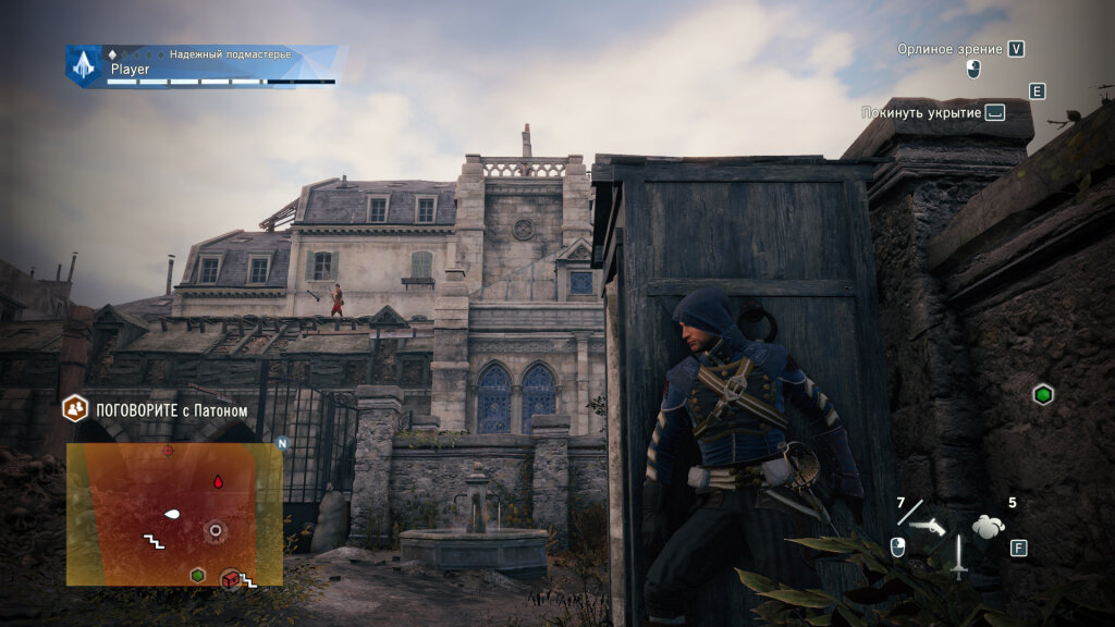 А стелс-элемент в Unity, конечно же, присутствует, причём используется достаточно часто. И причин тому несколько. Во-первых, противники стали «толще», рубить их стало дольше - и, следовательно, выросла продолжительность и сложность боя. Как правило, проще истреблять гадов скрытно или вовсе сбежать от них. Во-вторых, средств для скрытного истребления противника и передвижения у него «под носом» достаточно. К примеру, в Unity внедрена система укрытий а-ля Gears of War, и, подойдя к Арно, противник рискует быть утянут «за угол» уже немного неживым. Также осталось множество имевшихся ранее скрытых средств умерщвления: скрытые клинки, дротики, удушающий газ, дымовые бомбы – при таком арсенале вопросы со стелсом практически отпадают. Есть ещё одно ноу-хау, о котором не хотелось бы забыть: прокачав способность маскировки, Арно простым нажатием кнопки временно превратится в… кого-нибудь, кто не вызывает подозрений у стражников. Выглядит по-идиотски, но иногда умение действительно полезное.