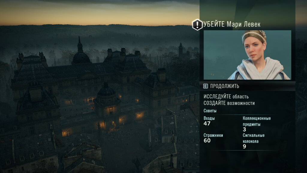 Что же касается собственно дополнительных активностей, то Unity может предложить просто какое-то невероятное их количество. Это небольшие задания на убийство, миссии-цепочки, связанные друг с другом небольшим сюжетом (так называемые «Парижские истории»), миссии-расследования, уровни-разломы, кооперативные задания, загадки Нострадамуса, сбор коллекционных предметов и многое другое. Активностей много как никогда раньше, однако, несмотря на это, суть большинства сводится к банальному «иди и убей кого-нибудь». Конечно, не все, однако больше половины миссий построено именно на таком принципе. Радует, что отдельные активности достаточно оригинальны. Это в первую очередь касается миссий-расследований, являющихся новшеством Unity. Геймплей в них представляет собой некую «обрезанную» версию L.A. Noire. Так, изначально у нас, как правило, есть жертва, и в ходе обследования места преступления и сбора улик появляются один или несколько подозреваемых. Правильно выбрав убийцу, мы получим некий бонус к награде, выраженный в денежном эквиваленте. Не угадали – награда станет чуть меньше, но это некритично. Расследования мне очень понравились, и количество оных я бы даже увеличил, хотя их и так немало. По итогам каждого раскрытого преступления в справочник вносится его история, знакомиться с которой, как правило, также интересно.