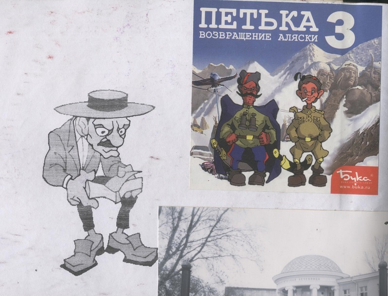 Скетч персонажа и промоматериал по "Петька-3. Возвращение Аляски".