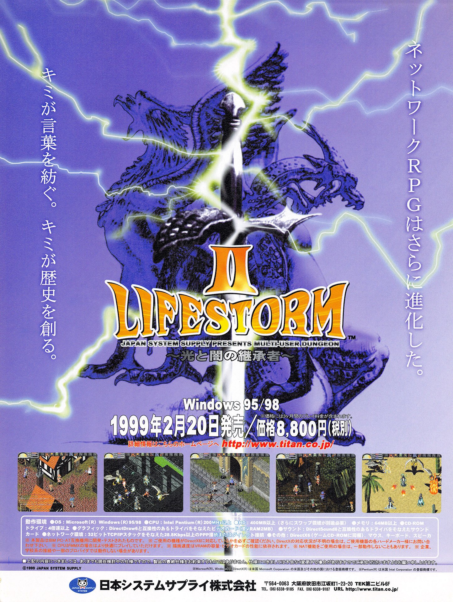 Ответ. MMO RPG "Lifestorm 2 ライフストーム 2" (1999), выпущенная Japan JSS / Taiwan Wayi International Digital Entertainment Co., Ltd. Это была моя первая онлайн-игра. Её прохождение совпало с периодом, когда я встречался со своей первой любовью.