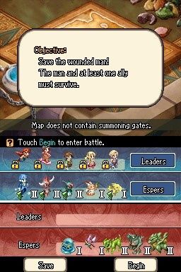 Крест на тактике как таковой ставится в первую очередь управлением. Большую часть времени мы тыкаем стилусом в нижний экран, пытаясь выбрать нужный спрайт среди оравы мельтешащих подопечных, растягиваем рамку, дабы использовать конкретных бойцов, и давим на кнопки, назначая гамбиты и расходуя квикенинги. Крестовиной перемещаем камеру, «буквенные» кнопки отвечают за различные функции, но единственная действительно важная – «выбрать всех». Под началом игрока зачастую не более 15-18 персонажей – различных стихийных «пристрастий» и типов, – но именно мощный кулак, бьющий в самое уязвимое место в обороне противника, – лучшая тактика в 95 случаях из 100. Я бы и рад удариться в микроменеджмент, но попасть в нужный спрайт действительно очень сложно: в игре не предусмотрено никаких пауз (кроме разве что выхода в главное меню…). Можно было бы выбирать отряды по иконкам персонажей вверху нижнего экрана и руководить боем на уровне «отделений», но в таком случае в мясорубку отправятся не только эсперы, которых в случае смерти можно совершенно бесплатно (!) заменить новой партией монстров, но и герои, оживить которых не всегда можно.