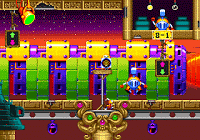 А ещё игру дополнительно усложнили. И... Я не знаю, что по этому поводу сказать. Кто-то в середине 1990-х действительно посмотрел на детище Treasure и решил, что как-то уж оно больно легко проходится? Я слышал, что подобная практика неестественного усложнения западных релизов игр бытовала из-за принятой за рубежом системы проката картриджей, ведь чем дольше геймер пытался пройти арендованную игру, тем больше денежек с него получал прокатчик. Не знаю, насколько правдива такая информация (может, японские разработчики просто решили немного побыть садистами), но, вспоминая многочисленные ревью на том же GameFaqs, заканчивающиеся вопросом "Buy or Rent?", логическое зерно в ней всё-таки присутствует. В любом случае, западный релиз Dynamite Headdy — это настоящая проверка на прочность, жестоко наказывающая даже за малейшую оплошность. Во-первых, сам Хэдди стал более хрупким. Во-вторых, боссы стали прочнее и немного агрессивнее. В-третьих, Вам не дают ни одного продолжения (вместо двух в оригинале), поэтому если Вы растеряли все жизни до того, как нашли хотя бы одно, то добро пожаловать в Гейм Овер. Хоть некоторые изменения сложности, как ни странно, и пришлись к месту — в большинстве случаев главарей сделали просто раздражающими, заменив честный вызов испытанием терпения. Учитывая, что боссы из второй половины игры даже в японской версии рвут задницу, то, что с ними сотворили для Америки и Европы, перерастает в какой-то особый вид извращения. Честности ради, они хотя бы остались проходимыми, но от игрока потребуют максимальной концентрации и выносливости.