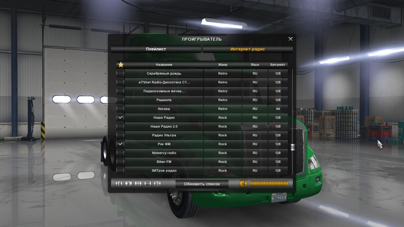 А вот что явно удалось - так это музыкальное сопровождение. Помните радио в «Дальнобойщиках 3»? С рекламой, с кучей станций с разнообразными направлениями музыки и рекламой того, что есть в самой игре и сделано специально для игры и для погружения в её атмосферу? Так вот – забудьте. Здесь сопровождение рейсов - абсолютно не заслуга авторов! Да, тут есть трек-другой, записанный композитором для меню, но за основное музыкальное сопровождение отвечаете вы сами и Интернет-радио. Вы можете или составить свой плейлист и встроить его в игру, или же выбрать понравившуюся реальную радиостанцию из списка и слушать в дороге её. Список с русскими радиостанциями в сети находится без проблем, так что вы спокойно сможете рассекать калифорнийские просторы под песни Михаила Круга с любимого радио «Шансон». Честно, идея с подобным встраиванием радио мне действительно понравилась, без шуток, - вот только смысла тут немного. Никто не мешает сделать то же самое, просто открыв параллельно Winamp и запустив через него тот же самый радио-поток.