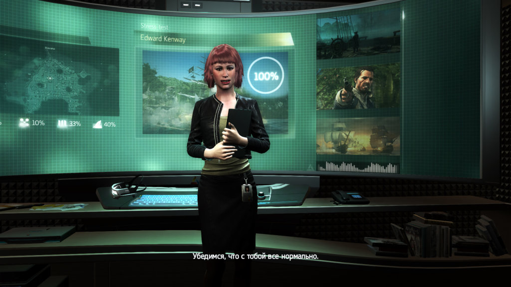 Как и в предыдущих частях, в Assassin's Creed 4 присутствует и современный мир, где мы отыгрываем роль некоего безымянного сотрудника небезызвестной "Абстерго". Наш безымянный герой изучает закоулки памяти нашего старого знакомого Дезмонда Майлса под чутким руководством своего... хм.... руководства. Параллельно мы будем взламывать компьютеры наших коллег, изучать некие тайные заметки, узнавая различные интересные игровые подробности. В современном мире, как в каком-нибудь The Lost Archive, мы видим происходящее от первого лица, поэтому кто наш герой - остаётся тайной. Эта часть игры является скорее исследовательской и сюжетной, и как такового геймплея в ней нет, но в целом реализация современного мира, на мой взгляд, выполнена на уровне - на порядок выше, нежели в Assassin's Creed 3.