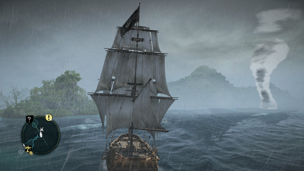 А вот выглядит Assassin's Creed 4 просто-таки отлично. Впервые выйдя в море, прямо не замечаешь, как сам собою начинает открываться рот и перестаёшь замечать происходящее вокруг: так здорово выглядит море и столь захватывающим кажется путешествие по нему. Реалистичная анимация, высокополигональные модели, красивые спецэффекты, а какой здесь дождь - это просто надо видеть. Музыка также отличная, а композитором является небезызвестный Брайан Талер. При этом когда вы плаваете на корабле, команда начинает распевать этакие залихватские пиратские песни, так называемые шанти, репертуар которых увеличивается при их поиске и сборе по островам. Задумка как минимум интересная, согласитесь, побуждающая всех меломанов к полному исследованию мира с целью сбора всех шанти. Локализацией игры занимались ребята из "Логрус", и к переводу лично у меня никаких нареканий нет - голоса подобраны удачно, актёры не переигрывают, а в переводе субтитров и текстов ошибок не выявлено.