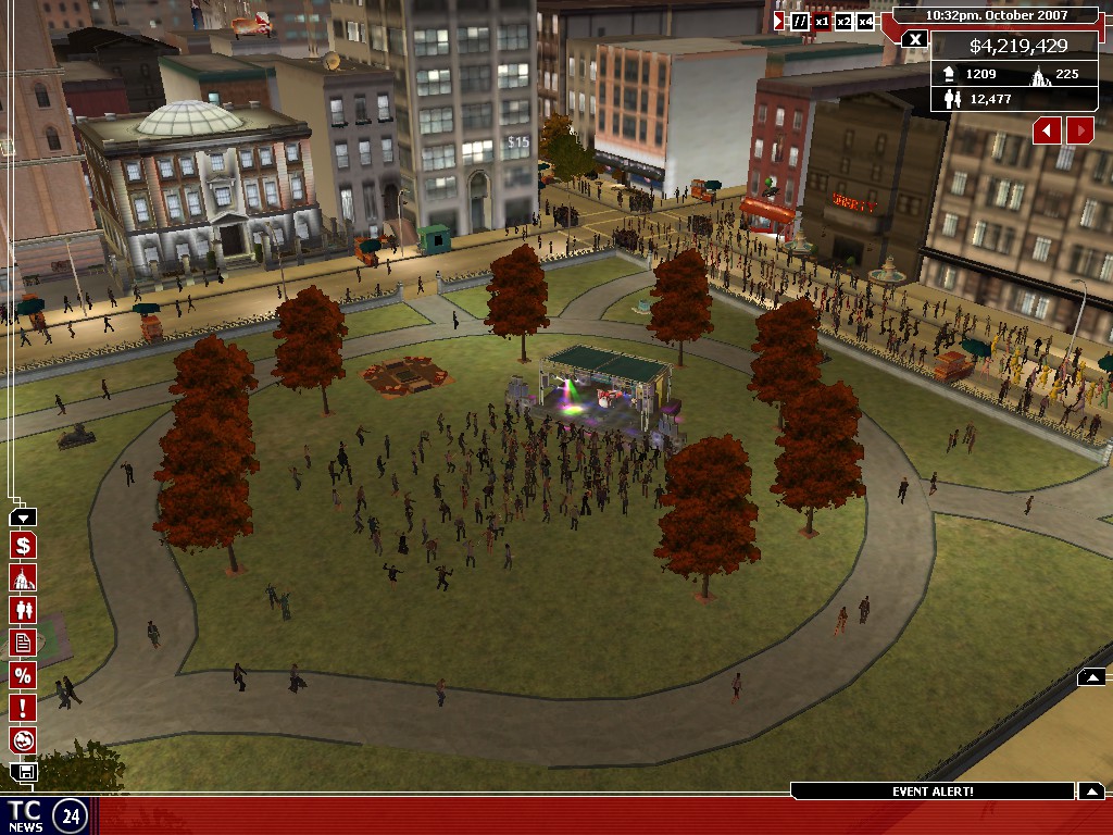 Постройка некоторых "украшательств" ведёт к дополнительным событиям. К примеру, парковая сцена - это не только бонус к удовлетворённости, но ещё и необходимое условие для проведения рок-фестиваля, что даже покажут в новостях.