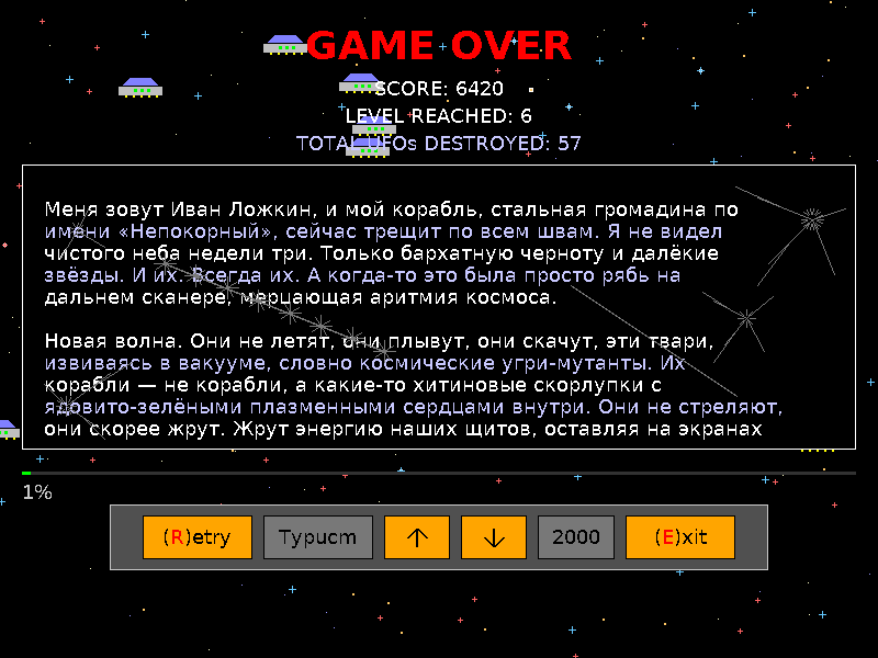 1. Потихоньку получилась вот такая микроаркада, яркая, шустрая и пустая, помесь кого-то с чем-то )