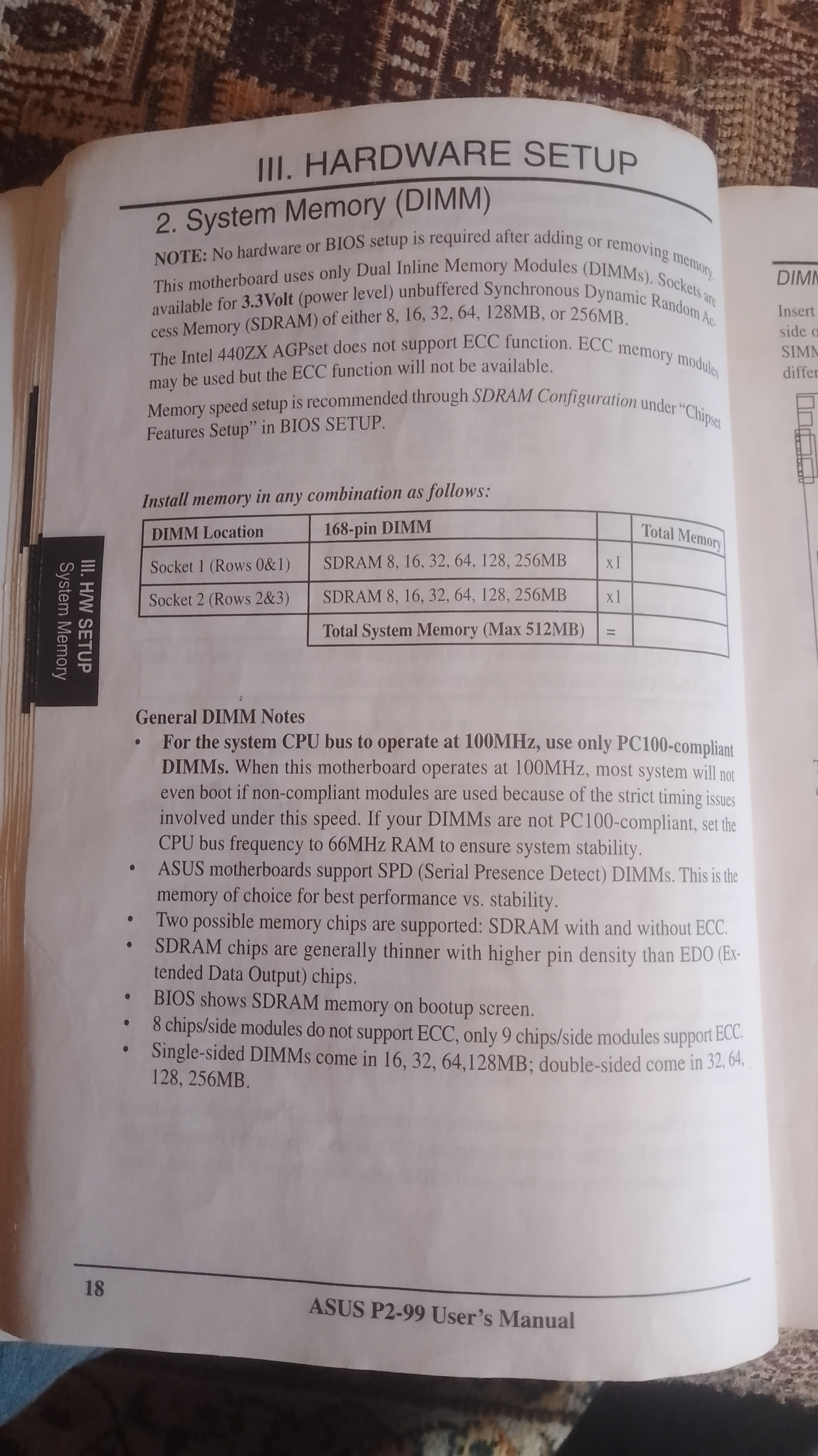 Asus P2-99B не работает 512mb памяти на 133Mhz