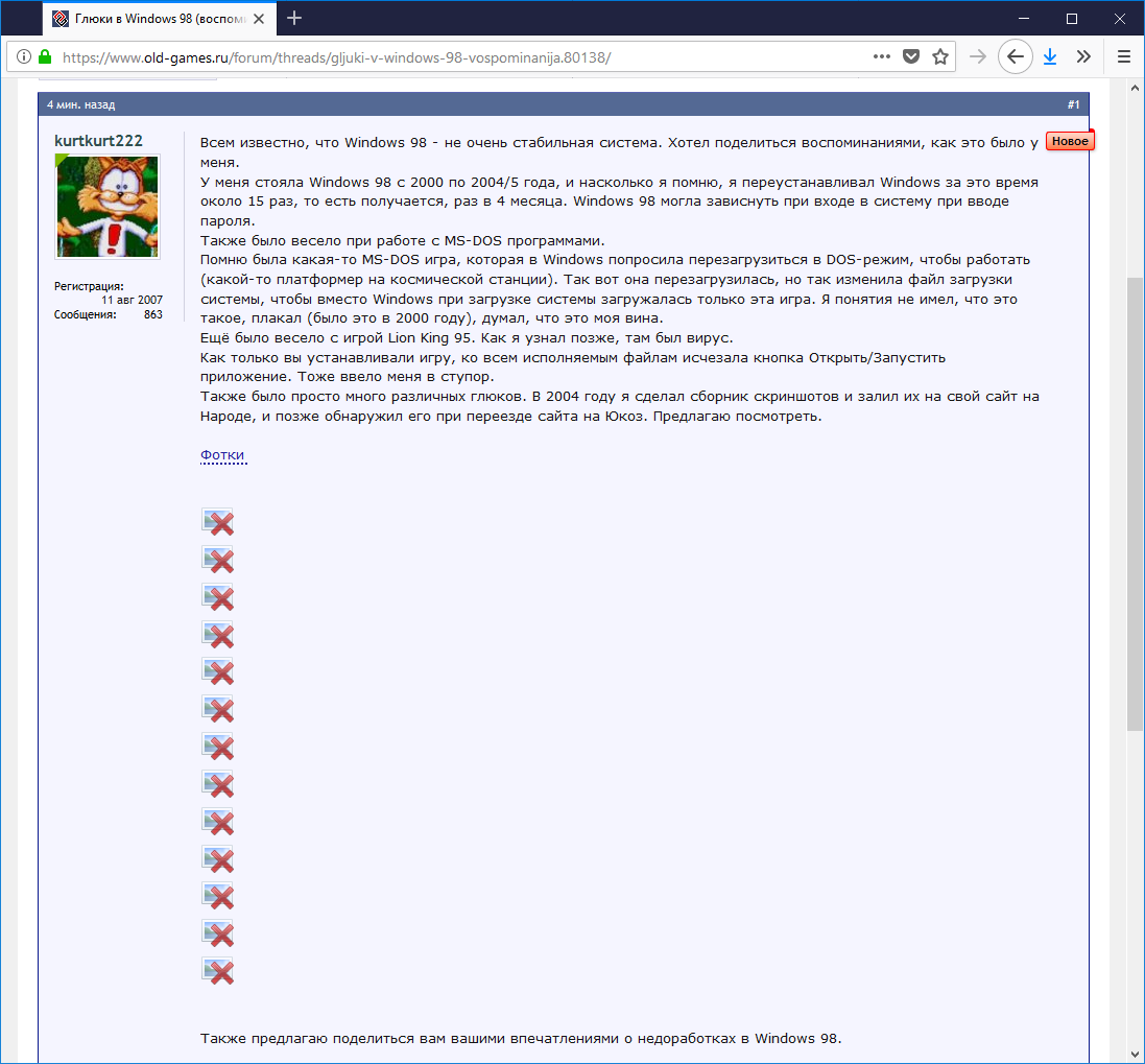 Глюки в Windows 98 (воспоминания)