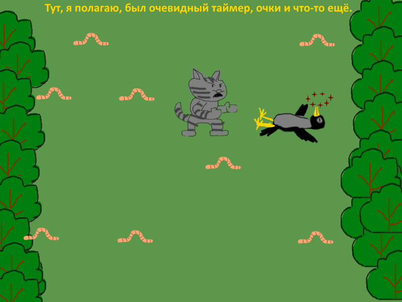 ✓ [Кот-рыболов] ZX Spectrum, Arcade? Игра про кота, дерущегося с вороной за червяков.