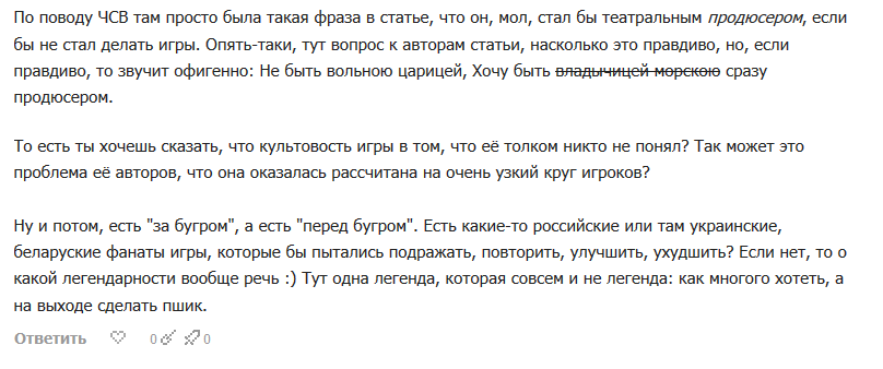 Друзья, в это тяжёлое и непонятное для всех нас время мы просим вас воздержаться от любых упоминаний политики на форуме, - этим ситуации не поможешь, а только возникнут ненужные ссоры и обиды. Это касается также шуток и юмора на тему конфликта. Пусть войны будут только виртуальными, а политики решают разногласия дипломатическим путём. С уважением, администрация Old-Games.RU.