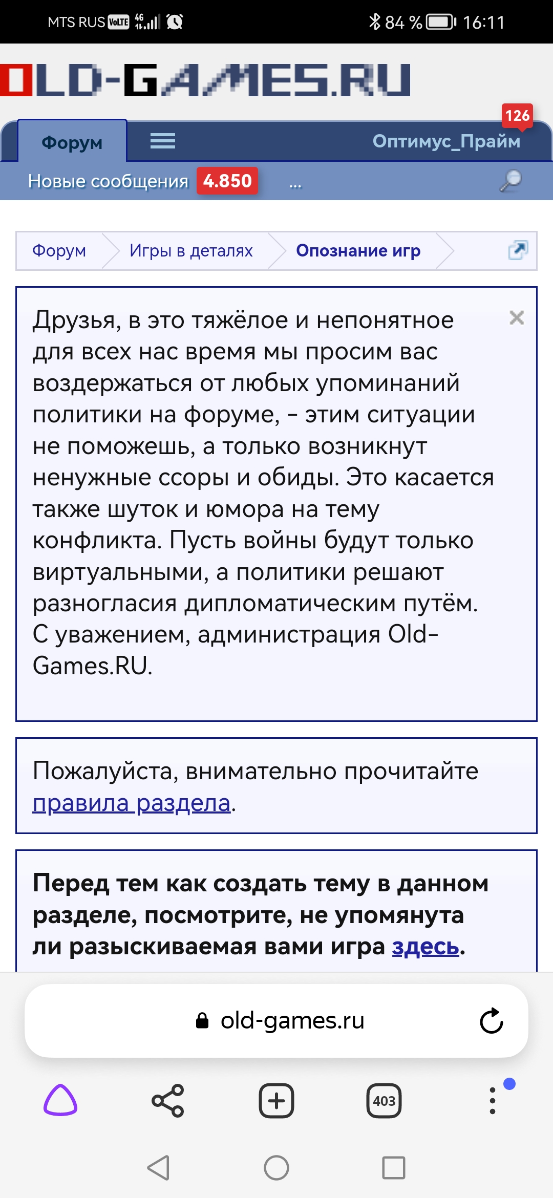 Друзья, в это тяжёлое и непонятное для всех нас время мы просим вас воздержаться от любых упоминаний политики на форуме, - этим ситуации не поможешь, а только возникнут ненужные ссоры и обиды. Это касается также шуток и юмора на тему конфликта. Пусть войны будут только виртуальными, а политики решают разногласия дипломатическим путём. С уважением, администрация Old-Games.RU.