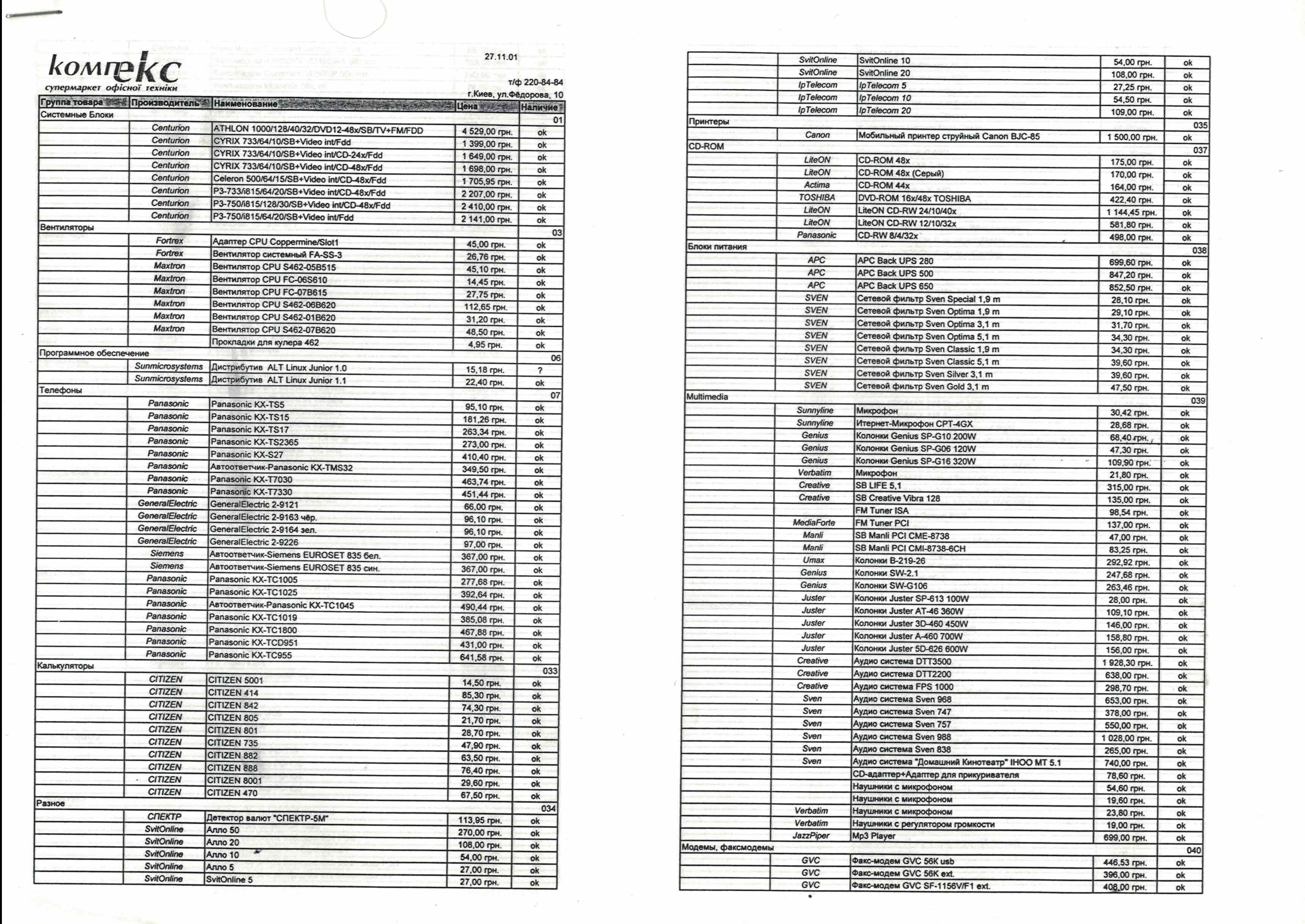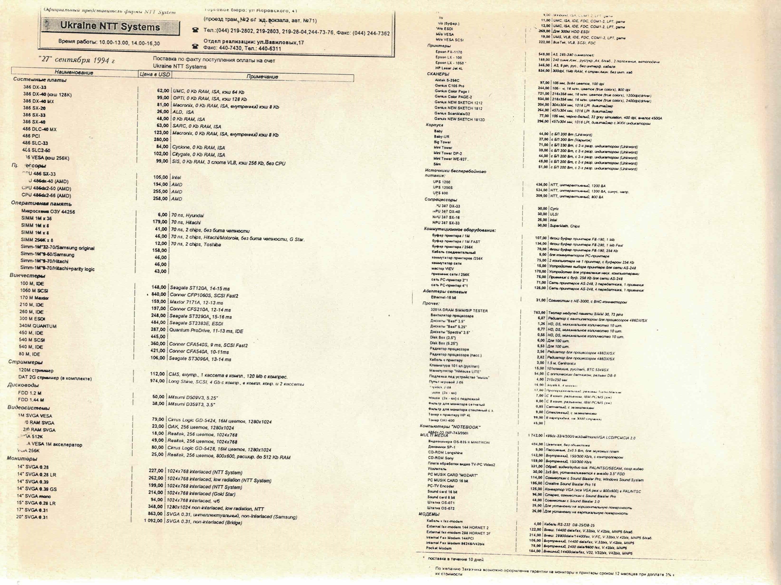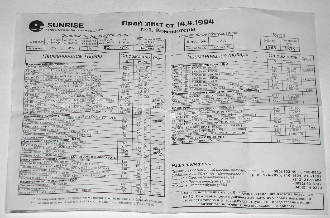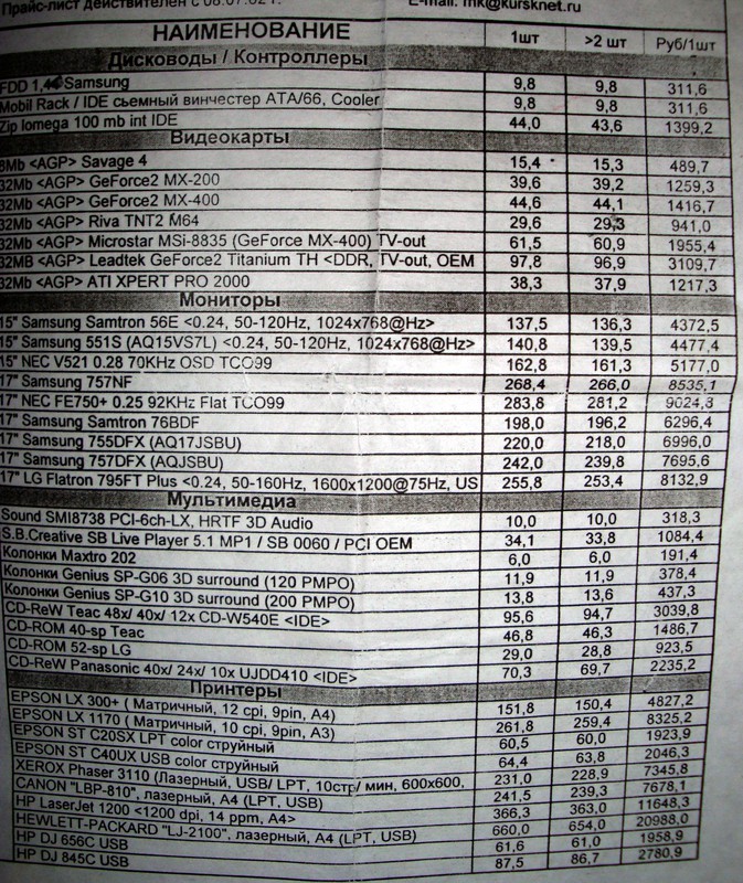 Старые прайс-листы на компьютерное железо