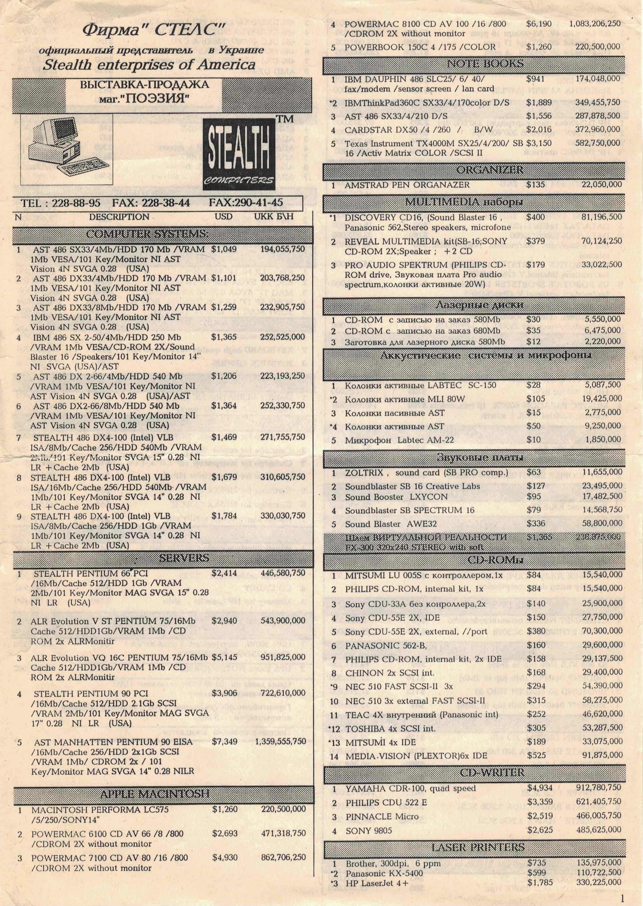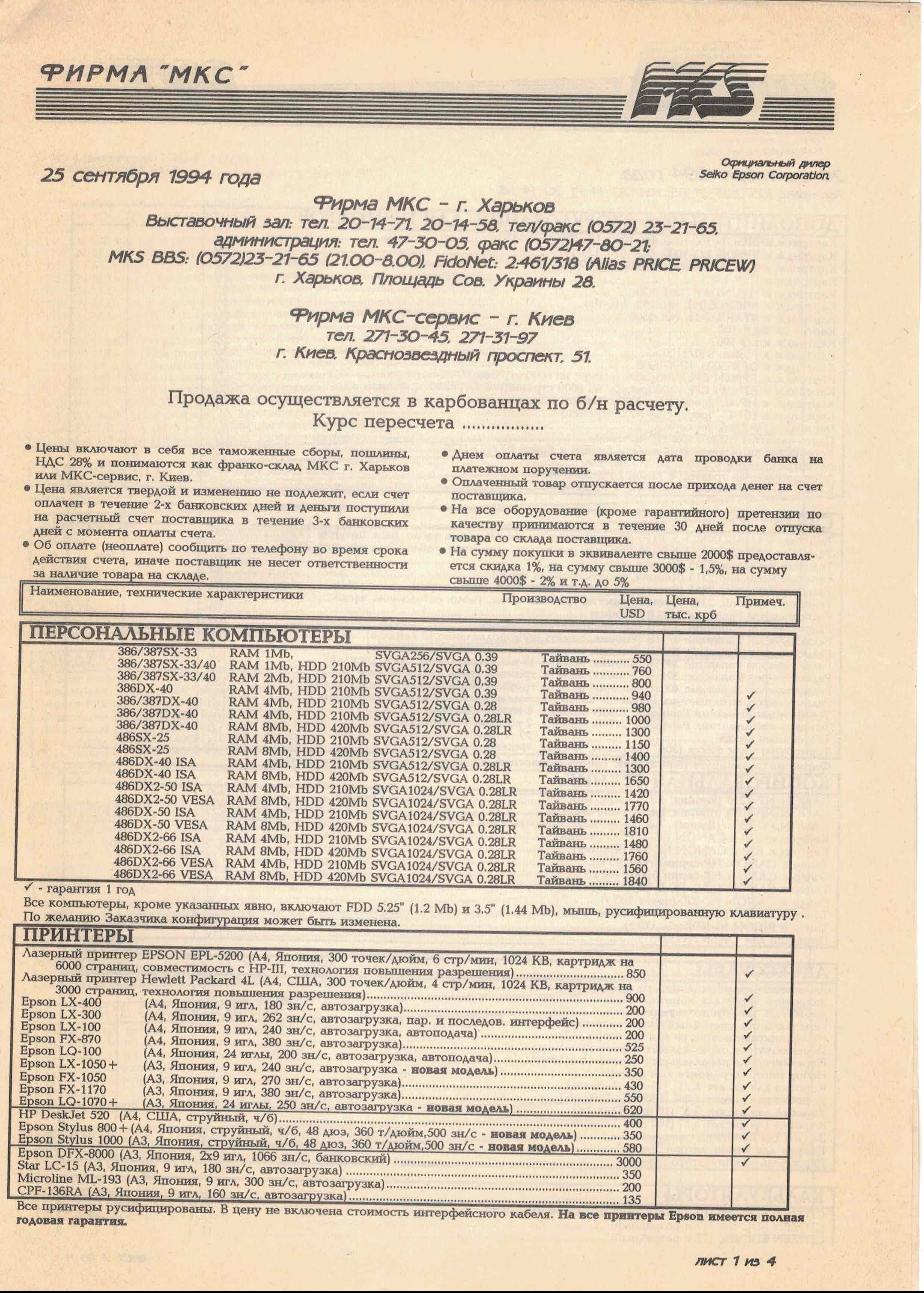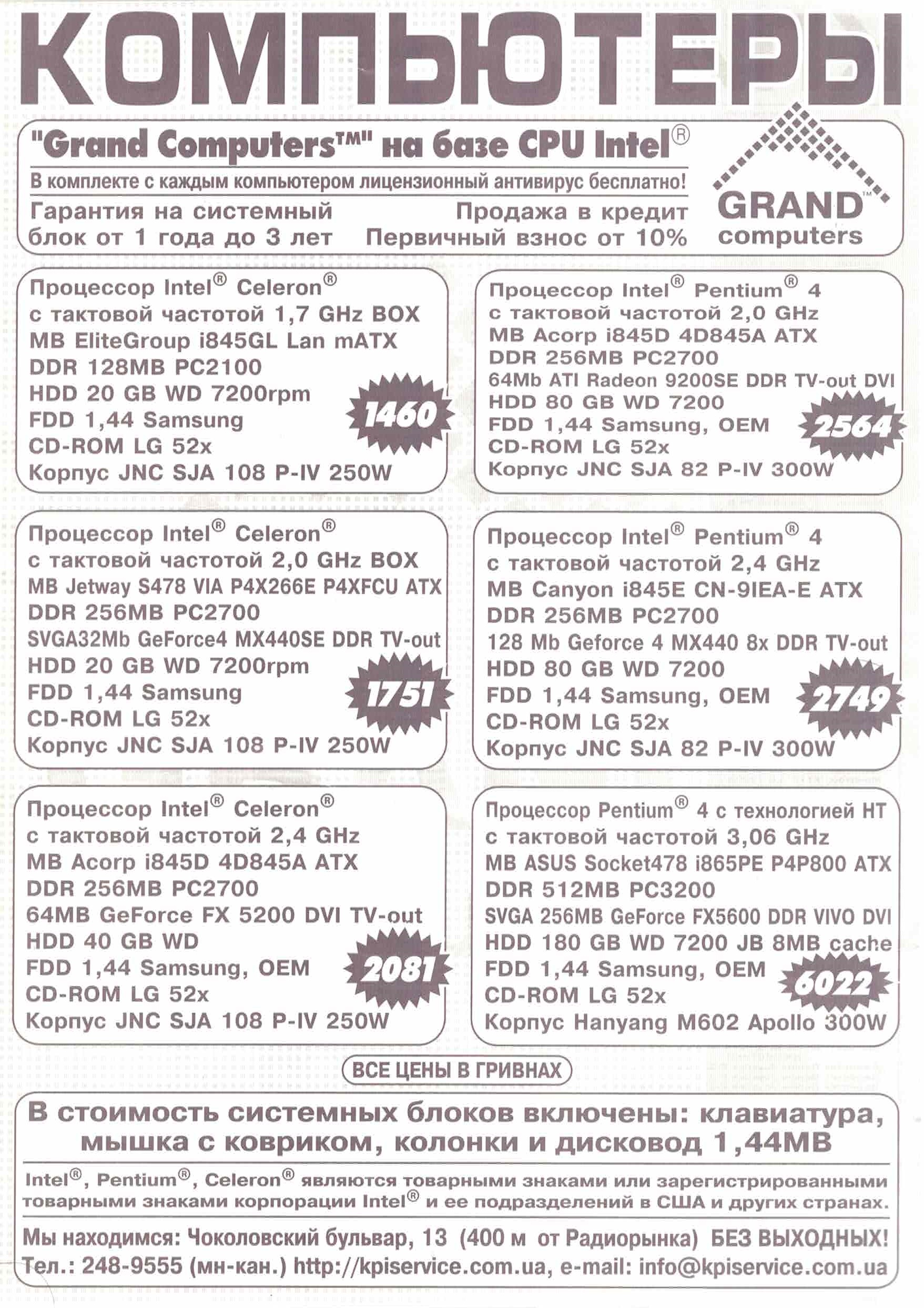 Старые прайс-листы на компьютерное железо