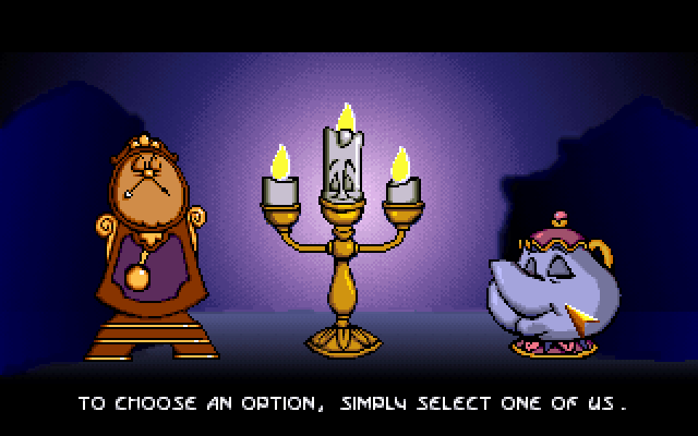 Disney's Beauty and the Beast сделана по мотивам диснеевского мультфильма "Красавица и чудовище". Её смысл заключается в решении простых головоломок со знакомыми персонажами в качестве условных протагонистов. Игру отличают красочная VGA-графика и анимация, MIDI-саундтрек; есть также поддержка PC Speaker и Disney Sound Source (Covox).