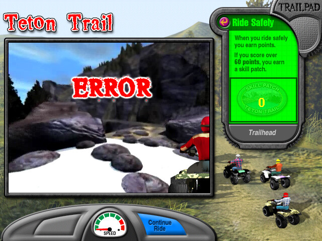Главное меню реализовано в виде портативного компьютера. Помимо информации о движке, лицензиях, спонсорах и прочем там есть и куда более интересные пункты. Во-первых, раз уж игра образовательная, к ознакомлению прилагается инструкция по пользованию квадроциклом - разумеется, достаточно краткая. Пользователю рассказывается, что нужно соблюдать те или иные правила вождения, внимательно смотреть на дорожные знаки, в обязательном порядке регистрировать свой квадроцикл, носить шлем и так далее. Взрослому всё это может показаться очевидным, но детям - нет. Большинство из них изначально считает, что квадроцикл - не машина, а игрушка, и именно поэтому первым пунктом в списке "Квадроцикл - это не..." стоит слово "Toy".
