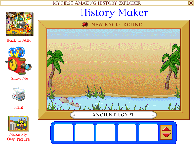 History Maker - это две мини-игры в одной. В первой необходимо выбирать для фона, олицетворяющего некую эпоху, подходящие ей объекты. После этого они появятся на картинке. Здесь нет ничего сложного, возможность проиграть начисто отсутствует. Во второй мини-игре мы можем создать полотно мечты, расположив на любом фоне какие угодно объекты. К сожалению, менять их размеры и цветовые характеристики нельзя, что несколько ограничивает полёт фантазии. Впрочем, получившееся творение можно распечатать и повесить на стенку рядом с сертификатом за спасение профессора.