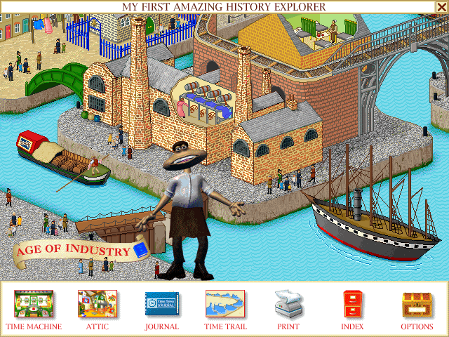 Итак, мы попали в выбранный временной период. Для прохождения, впрочем, потребуется побывать везде. Перед нами почти во всех случаях, за исключением современности (где просто обзорный экран), простирается карта соответствующего государства/части света/района. По ней можем перемещаться посредством курсора и кликать по большинству нарисованных объектов (при этом указатель мыши меняет свой вид на ладонь). После подобной манипуляции проигрывается звуковой эффект в тему и, если повезёт, небольшая анимация, а затем в возникшем поверх окне будет рассказано более подробно о выбранном предмете или технологии. Отметим, что для каждого объекта всегда отображается картинка, а сопутствующий текст озвучен. Иногда игроку дают возможность ответить на вопрос по мотивам (два варианта ответа, право на ошибку присутствует), - это приводит к получению наклейки или фотографии для нашего «альбома путешественника во времени». Ещё реже появляется возможность выбрать нечто «для души», что также пойдёт в ту же книжку. Например, придумать свой герб, написать своё имя по-древнеегипетски, присмотреть древнеримское прозвище и тому подобное. Разумеется, частичку Временной тропы тоже нужно искать. Она прикреплена к какому-то одному объекту из представленных. Остаётся лишь отыскать таковой, что иногда из-за обилия вариантов является нетривиальной задачкой.