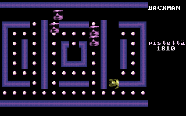 Жизнь всего одна, и после её потери игра завершается. Никаких бонусов нет. Тем не менее назвать Backman очень трудным нельзя, потому что поведение врагов ни в какое сравнение не идёт с оригинальной аркадой. Они не преследуют героя, иногда просто стоят и двигаются с невысокой скоростью. Опытные любители Pac-man справятся с этой финской игрой без особого труда.