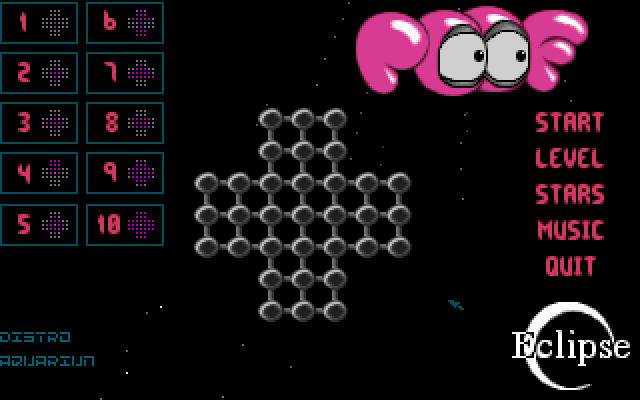 Настольная игра (или даже головоломка) для одного под названием "Солитер" известна ещё со Средних веков. Правила её очень просты, но если вы не имеете опыта игры и приметесь её решать, то наверняка потерпите неудачу как минимум несколько раз. Несмотря на большое количество верных алгоритмов, самостоятельный поиск таковых требует определённых усилий. Именно поэтому авторы великолепного компьютерного варианта "Солитера" - Poof - проявили оригинальность и реализовали целых восемь уровней, которые новичкам нужно проходить последовательно (но при этом они все открыты сразу).