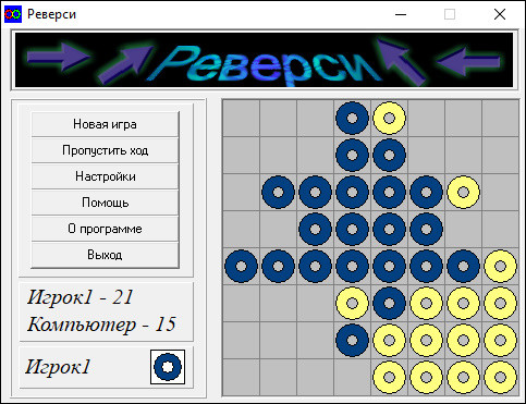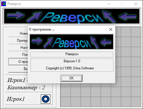 Я знаю много любителей настольных игр из России, но ни один из них не играет в реверси. А между тем количество российских компьютерных реализаций этой настольной игры на удивление велико. Вот вам ещё один - от неизвестного Дмитрия, скрывающегося под псевдонимом Dima Software. Собственно, прямых доказательств, что автора зовут Дмитрий, нет, - назвать свою one-man-студию Dima Software теоретически может и Иван, и Навуходоносор.