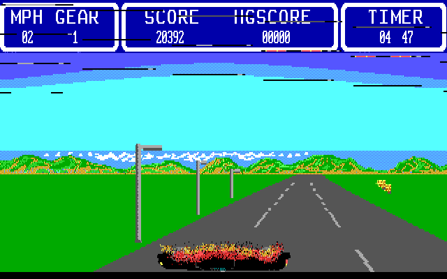 Перед нами весьма сомнительная и, вероятно, любительская поделка в жанре Racing, каким он был в начале 1990-х. В каждой из нескольких гонок участвуют три автомобиля, один из которых управляется игроком. Это была бы совершенно обычная гонка старого типа, если бы не один момент, полностью её испортивший. Трассы, как и положено, изобилуют поворотами, однако машина столь плохо реагирует на клавиши, отвечающие за эти самые повороты ("<" и ">"), что водить почти невозможно. Автомобиль сносит на обочину, где он едет, сбивая все столбы, и в скором времени взрывается. После трёх взрывов гонка начинается заново.