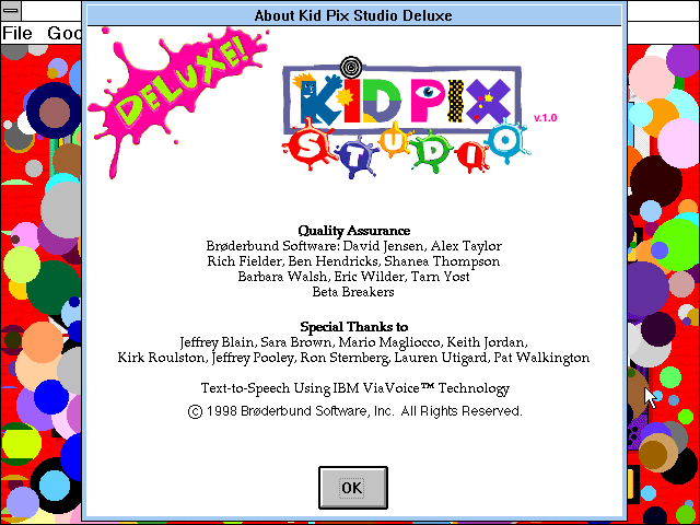 Kid Pix Studio Deluxe стоит всё-таки считать обновлённым переизданием оригинальной Kid Pix Studio (1996, Windows 3.x). Впрочем, буквально через несколько лет подобные изменения потянули бы в лучшем случае на обычный патч…