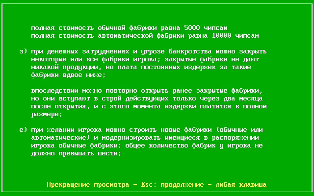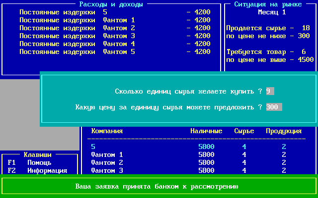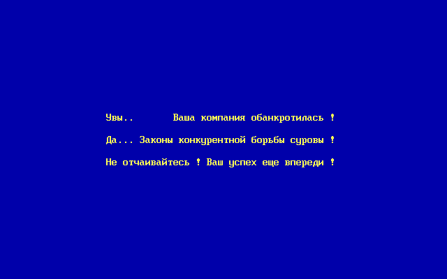 Очередной симулятор предпринимателя-спекулянта-коммерсанта-директора из России начала 1990-х. На волне перехода к рыночной экономике таких программок вышло довольно много, - видимо, большое количество людей хотело почувствовать себя в кресле капиталиста. Поглядите хотя бы на название разработчика - "Московская школа менеджеров"! В целом этого достаточно, чтобы впечатление об игре сложилось соответствующее, - но всё же рассмотрим её чуть подробнее.