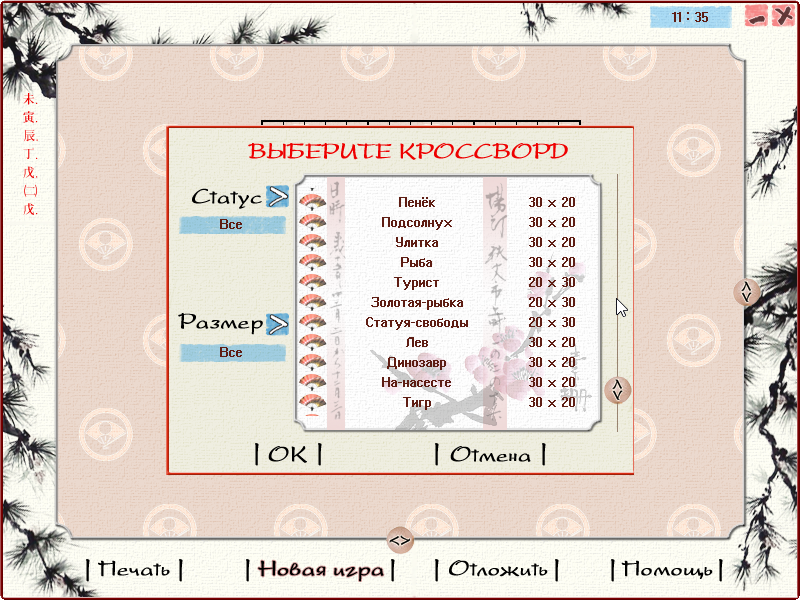 Дизайн сильно изменился - к счастью, только в лучшую сторону. Теперь фоны выполнены в стиле японской живописи, экран стал светлее, добавлена красивая музыка. Все старые кроссворды остались, но к ним добавились почти сорок новых, среди которых есть довольно неожиданные рисунки - "Статуя Свободы", "Казак", "Пень" (!) и даже "Козёл и герань"! Изменений же в интерфейс и управление внесено не было. В главном меню можно найти кнопку "Обновить базы", но они, конечно же, не обновляются, - вероятно, когда сайт компании функционировал, оттуда можно было скачать новые задания.