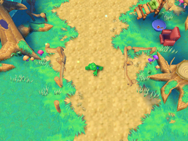 Управление тут, мягко говоря, нестандартное... Тяжёлое наследие приставочного режима. Основные команды в меню: OK – клавиша C, Cancel – клавиша D (в подсказках на экране они ошибочно перепутаны местами). В роли кнопки “/” выступает клавиша «Пробел». В геймплее за повороты отвечают клавиши A и D, перепрыгнуть – С, подпрыгнуть – X, язык – Z, перемещение характерными прыжками – Arrows (здесь необходимо чётко разделять действия «перемещение» и «перепрыгивание», иначе обязательно окажетесь в болоте).