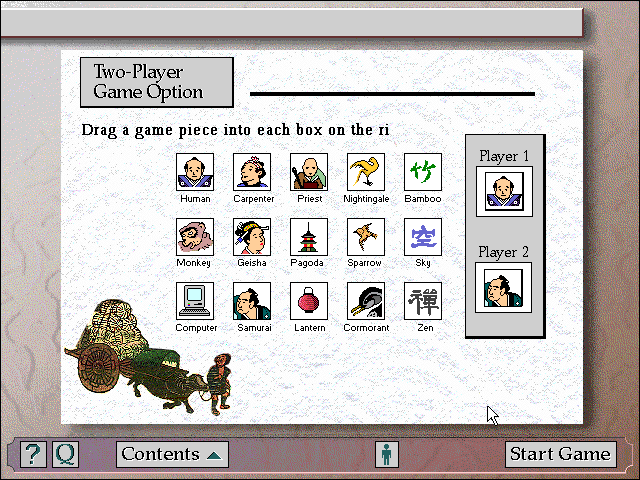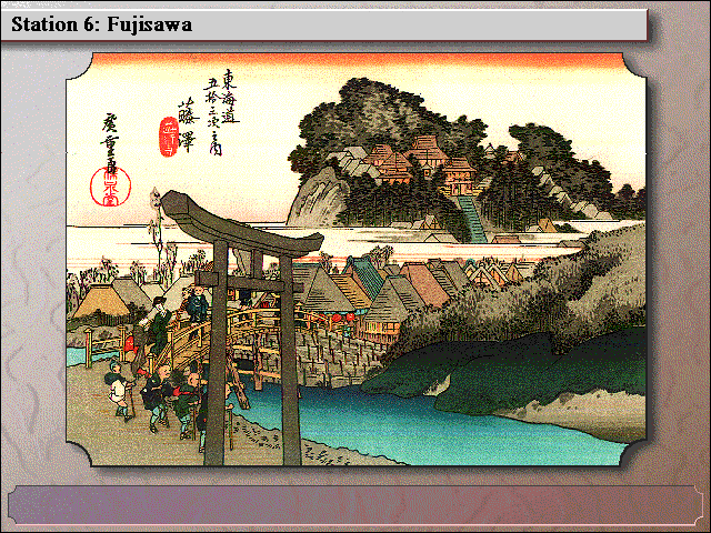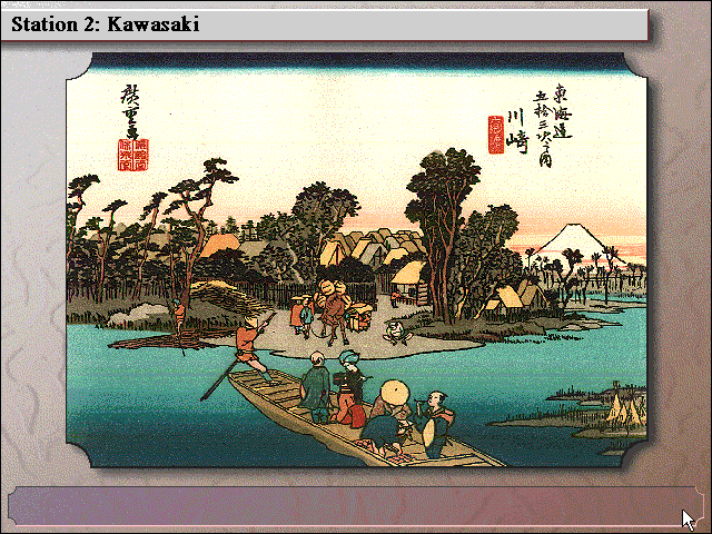 Итак, после выбора в меню оглавления (Table of Contents) мы попадаем на очередной экран, где имеются следующие разделы: Lessons (по сути – краткие параграфы с рассказом о какой-либо черте Страны восходящего солнца), Quizzes (тесты на основе прочитанного материала), Game (игра-ходилка на одного или двух игроков с путешествиями по «53 станциям Токайдо») и Stations (изображения гравюр, показывающиеся при посещении этих самых станций). Рассмотрим всё это великолепие поподробнее.