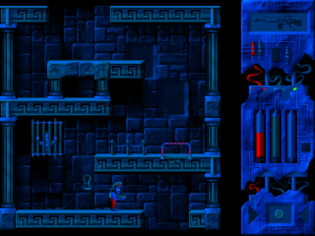 Многим наверняка покажется непривычным и отсутствие уровней: весь мир Lazarus'а - это одна гигантская локация (пусть и разделённая на несколько условных тематических "зон", слегка различающихся антуражами), но при этом каждый экран - отдельное "помещение", нередко сообщающееся с соседними, - то есть никакой "прокрутки", известной также как "скроллинг", здесь нет. Вместе с тем некоторые такие "зоны" разделены непреодолимыми преградами, а отдельные "комнаты" и вовсе полностью изолированы, ввиду чего попасть в них можно только при помощи телепортов (заставить работать которые тоже отнюдь не тривиально: для одних нужны карты доступа, для других - пароли).