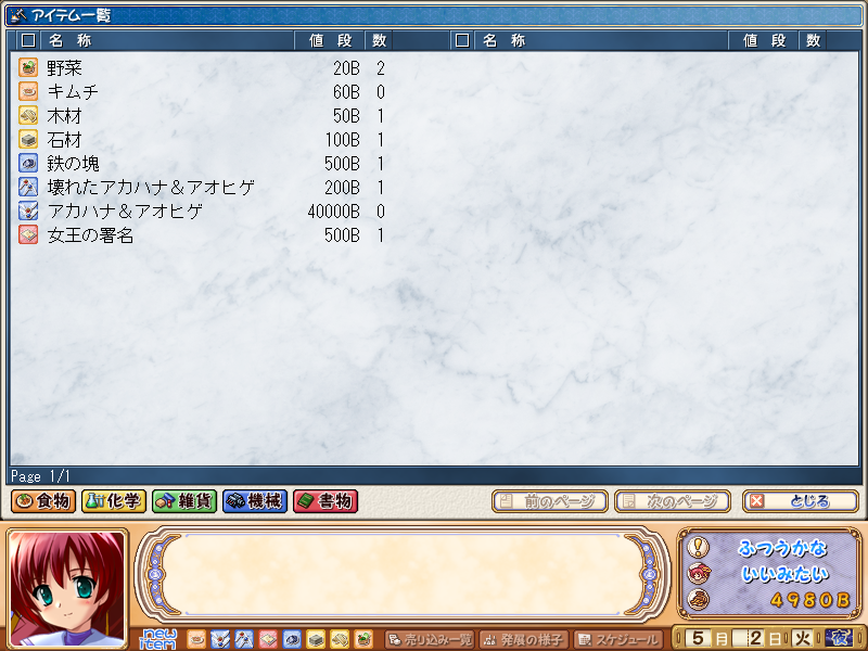 Вероятно, вы уже знакомы с первой частью – Aoi Umi no Tristia (2002, Windows). Спешим сразу же сказать, что Aoi Sora no Neosphere отличается от своей предшественницы во многих аспектах геймплея. Впрочем, часть вещей не поменялась. Нам всё так же дан целый год. Двенадцать месяцев по двадцать восемь дней. Каждый из них к тому же поделен на три части. Такое, впрочем, было и раньше, но теперешний интерфейс гораздо понятнее отображает текущее положение дел. Начнём обсуждение изменений с мастерской, где Наноке придётся проводить большую часть своего времени. Доступный нам функционал ощутимо расширился. Теперь в наличии аж целых десять функций. Начнём с самой важной – изучения вещей. Едва у нас появляется новый предмет (вручает кто-то или мы покупаем), необходимо его хорошенько осмотреть. Данный процесс, впрочем, не бесплатен и требует местной валюты. Вероятно, героиня ставит какие-то опыты и исписывает листы бумаги. Около каждого предмета находятся несколько маленьких квадратов. С их помощью отображается прогресс изучения. Чем больше позеленело, тем ближе процесс к концу. Данное действие приводит к открытию новых рецептов. Справа притаился агрегат для производства вещей. В нём и осуществляется создание предметов. Для этого требуются как время, так и ингредиенты. Агрегат неприхотлив, позволяет готовить в себе что угодно, да хоть еду и металлические предметы. В процессе его можно модернизировать, увеличивая шанс успешного создания вещей и скорость штамповки оных. В нижней части экрана со временем появится наковальня, с помощью которой мы будем совмещать предметы друг с другом. Книжный шкаф – сосредоточие наших научных знаний и записей – всегда к нашим услугам в верхней части экрана. Стоит отметить, что теперь синтезированные съедобные предметы можно не только продать, а ещё и схомячить самолично. С чаем, например. Они так или иначе изменят наше состояние. Например, снимут усталость. За данный процесс отвечает чайный сервиз на столе посередине экрана. На нём же лежит книга для сохранения игры. Её функция осталась той же самой и в обсуждении не нуждается. Дверь ведёт в город, лестница – к спальне, где Нанока отсыпается до следующего дня и восстанавливает силы. Также в мастерской обретаются двое наших рукотворных друзей – говорящий пёс Стука, дающий подсказки, и голем Тензан. Последний отвечает за строительство. В интерфейсе, что радует, явным образом отображается состояние героини: например, насколько она устала. Теперь, пока самочувствие позволяет, можно работать хоть сутки напролёт.