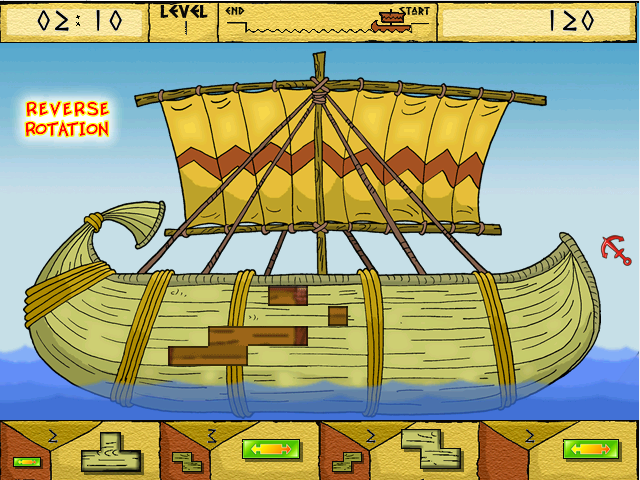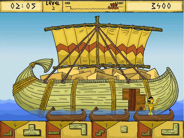Игру мы начинаем в Древнем Египте: плывём на папирусной лодке по реке Нил. Как только пройдём уровни с этим видом корабля, откроется следующий тип, средневековый. А как только завершим этапы и с ним, то будем чинить уже современный железный корабль; по мере прохождения уровней сложность возрастает. В целом - игра ничего, но она требует смекалки и продуманности действий.