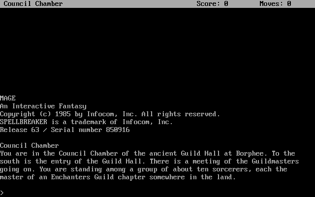 Как и предыдущие части данной условной "линейки", Spellbreaker не содержит никакой графики, а игровой процесс заключается в чтении текста, описывающего текущую ситуацию, и парсерном вводе тех или иных команд, обычно представляющих собой глаголы либо (чаще) их сочетания с существительными, нередко являющиеся, по сути, целыми развёрнутыми предложениями или даже сразу несколькими (!) таковыми. Разумеется, одной из "основ", как и прежде, является претворение в жизнь различных заклинаний, что нередко будет критически необходимо (в том числе, несмотря на высокий "статус" протагониста, удастся выучить кое-какие новые). Отличий от предыдущих "частей" два. Во-первых, периодически предпочтённые нами чары могут не подействовать (из-за упоминавшегося выше ослабления магии в мире, - для исправления такой ситуации можно либо попробовать наложить их повторно, либо, как ни удивительно, просто поспать, чтобы набраться сил). Во-вторых, что куда важнее, появились так называемые "Кубы Основания", при помощи которых можно либо усилить действие какого-либо колдовства, либо перенестись в другую локацию (без их использования последнее нередко невозможно осуществить в принципе). Всего предметов данного типа по мере прохождения нужно будет собрать двенадцать штук - и каждому из них придётся вручную задать то или иное "имя" (разумеется, можно ограничиться для этого просто цифрами), дабы впоследствии вводить его и тем самым задействовать именно этот куб (ибо в противном случае, если у вас их два или более, программа просто не поймёт, какой из них использовать).
