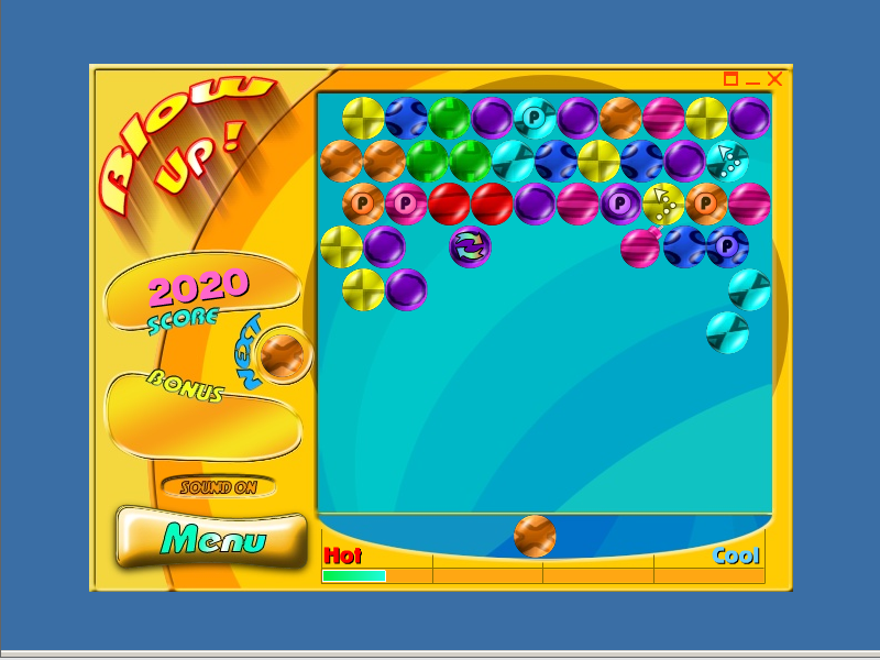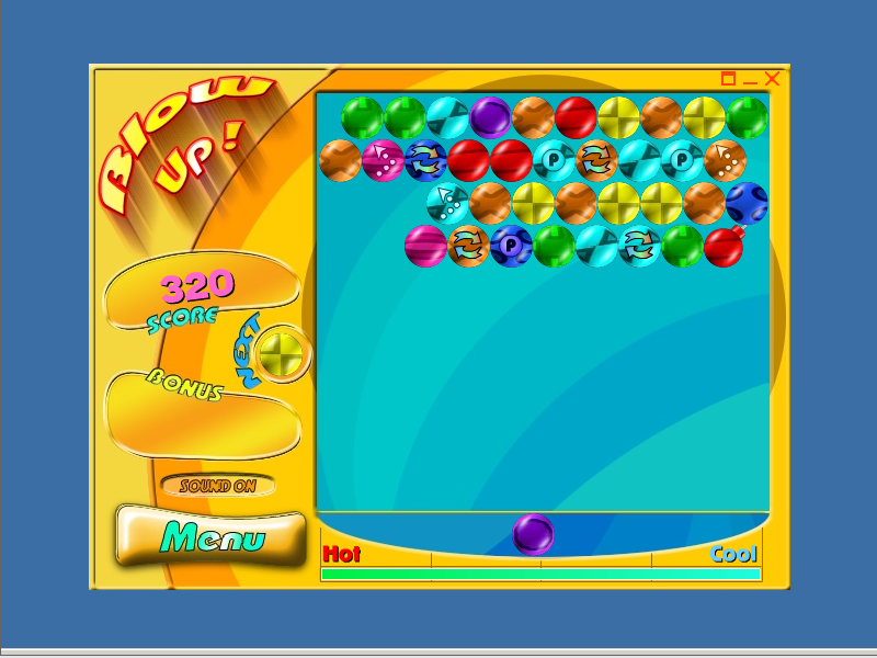 Ещё одна игра от GameGlade.com. Да, именно так называется контора, создавшая эту казуалку. Суть её заключается в уничтожении цепочки из двух шариков одинакового цвета путём закидывания туда ещё одного такого же. Всё как в Zuma или Color Lines. Шарики находятся в верхней части экрана и опускаются, - и нужно, чтобы ни один из них не соприкоснулся с нижней частью игрового поля, откуда мы стреляем. Ещё ниже показывается индикатор, который указывает на наш ход. Слева на нём написано «Hot», а справа – «Cool». Если игрок кидает шарик в другое место или же не находит цепочку из объектов одинакового цвета, то полоска индикатора сокращается, и как только она дойдёт до отметки «Hot», то шарики опустятся на один "ход". И так будет продолжаться до тех пор, пока они не дойдут до нижней части игрового поля. Собственно, нам нужно, чтобы полоска не достигала критической отметки, а для этого - метко стрелять в правильное место.
