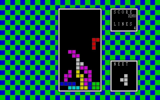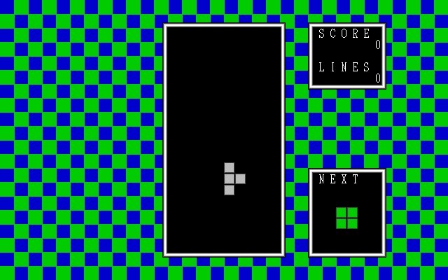 Перед вами одна из любительских адаптаций незабвенного Тетриса, созданная японцами для своего PC-98 в 1992 году. Распространялась она совершенно бесплатно как на дискетах, так и просто внутри локальной сети образовательного учреждения с нетривиальным официальным англоязычным названием «National Institute of Technology, Kisarazu College» тамошними студентами-авторами.