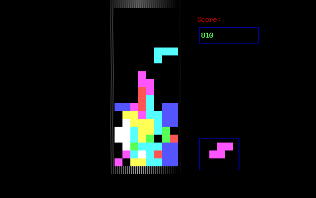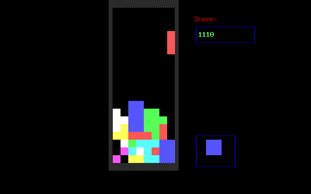Самый обыкновенный тетрис для DOS, который по функционалу и геймплею уступает в том числе и оригинальной версии от Алексея Пажитнова. В тетрисе от Zura Khetsuriani нет ни постепенного ускорения игрового процесса, ни таблицы рекордов, - только стакан, счётчик очков и окошко, в котором отображается следующая фигура. Графика же выполнена в ASCII и лишена каких-либо украшений.