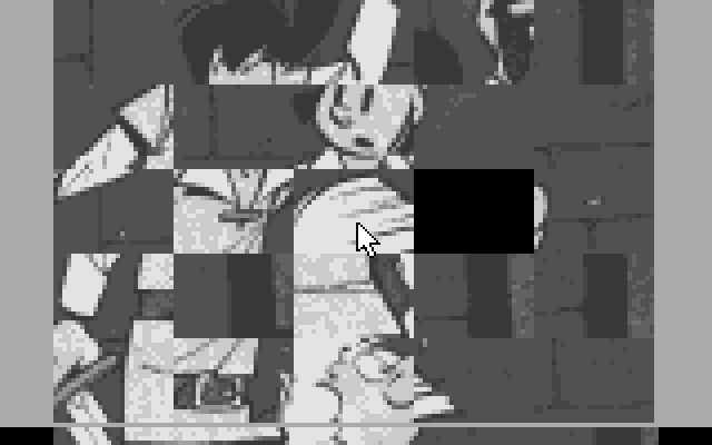 Даны семь чёрно-белых картинок на тему мультфильмов - Смурфики, Астерикс и т.д. Каждую предлагается строго по очереди собрать в режиме всем известной головоломки, управляя ЛКМ. Интересно, что фрагменты картинки перемешиваются по какому-то странному алгоритму: иногда все оказываются разбросаны, а иногда половина рисунка собрана с самого начала.