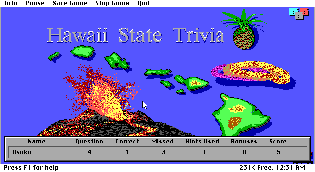 Вулканы, укулеле, слово "Википедия" и птицы мохо, - если это всё, что вы знаете о Гавайях, то предлагаем вашему вниманию Hawaii State Trivia - викторину, полностью посвящённую Гавайям. Несмотря на слово "штат" в названии, вопросы викторины не будут ограничиваться только "американским" периодом истории этого архипелага. Все они поделены на пятнадцать тематических разделов: история, природа, известные люди, религия, политика, спорт и другие. Есть даже раздел с вопросами на тему гавайского языка! Только стоит помнить, что уровень сложности здесь довольно высокий и многие спрашиваемые вещи имеют сугубо локальную известность.