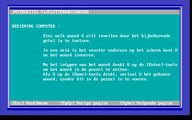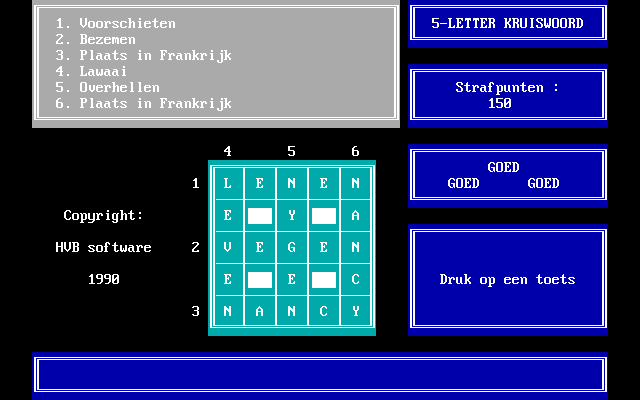 Старинная программа от голландской студии HVB Software, предлагающая решать небольшие кроссворды. Естественно, на нидерландском языке, так что его знание необходимо.
