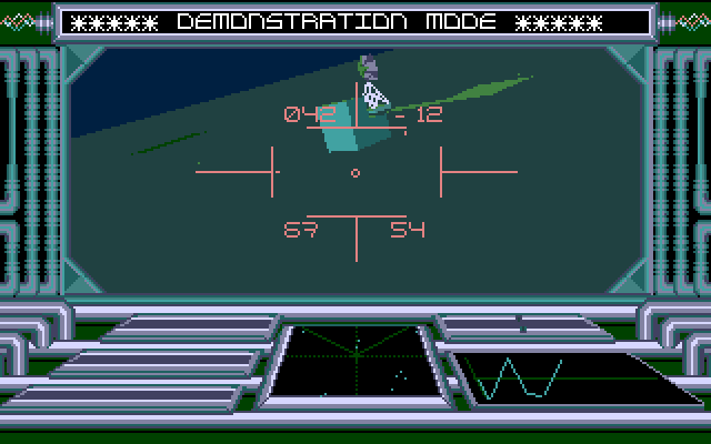 Главная особенность и одновременно беда Voyager - это, мягко говоря, очень своеобразное управление, в котором задействованы одновременно клавиатура и мышь; увы, охарактеризовать его можно исключительно как "на редкость неудобное". К счастью, в приложенной краткой справке для PC оно поясняется - но не полностью и с ошибками. Поскольку именно данный аспект является основой игрового процесса, то его придётся рассмотреть относительно подробно, но только применительно к самым важным моментам (с некоторыми "опциональными" же вполне можно познакомиться самостоятельно). Итак, после демонстрации красивой (именно так) заставки, показывающей десантирование танка на Янус (которую можно пропустить, нажав "Пробел"...), мы начинаем обозревать окрестности с видом от первого лица из кабины боевой машины, автоматически движущейся вперёд. Большую часть экрана занимает дисплей, на котором ("поверх" панорамы) отображаются числа, означающие высоту и угол направления башни с пушкой, из которой ведётся огонь (боезапас у базового оружия - лазера - бесконечен); здесь же можно заметить наши текущие координаты, количество остающихся в живых врагов и счёт, увеличивающийся по мере уничтожения последних (ибо играем мы всё-таки в аркаду). Ниже расположена приборная панель: справа - горизонтальная шкала скорости передвижения, слева (сверху вниз) - аналогичные по внешнему виду показатели брони танка (то есть "здоровья"; обнуление этой полоски приводит к гибели), высоты рельефа и запаса топлива (которое здесь конечно), по центру - радар, где точками разного цвета отмечены статичные препятствия, сброшенные нам бонусы (рассказ о которых будет ниже), летающие, а также "обычные" наземные и (отдельно) "особо сильные" наземные же типы противников. Если точки мигают, то это используемые против нас боеприпасы (мины либо ракеты), - в самой игре они выглядят так же, только имеют вид переливающихся треугольников.