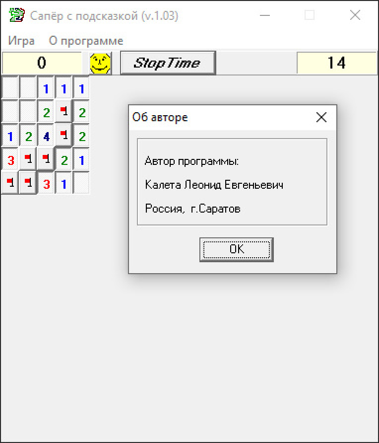 Любительский "сапёр" от российского разработчика из города Саратова. С подсказкой.