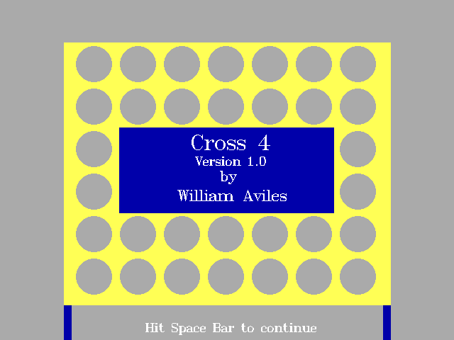 Да, это снова "Четыре в ряд", она же "Connect Four", и снова до смешного примитивная. Число компьютерных версий этой настольной игры, малоизвестной в России, но очень популярной в Европе и США, чрезвычайно велико, - но, увы, этот показатель обратно пропорционален качеству. Почти все такие поделки крайне убоги, со схематичной графикой и минимумом возможностей (однако со своей функцией - воссозданием на экранах мониторов настольной игры - справляются). Вот и Cross 4 из той же оперы: серый фон, жёлтая решётка и фишки двух цветов, - вот и всё. К тому же в этой версии отсутствует искусственный интеллект, так что играть можно только с другом рядом или с самим собой.