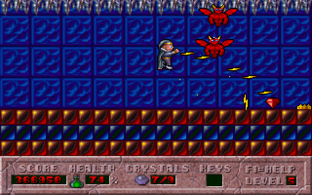 Управление простейшее: вправо-влево-прыжок, помимо этого вы можете стрелять стрелочками, слегка смахивающими на знак "Не влезай. Убьет!", причем стрелять можно как вперед, так и вверх. Графика (учитывая год выпуска) тянет на пять с плюсом. На протяжении всего прохождения игры (лично мной) был замечен один недостаток в геймплее... даже не недостаток, а недостаточек... если Вы находитесь на платформе лифта (который управляется стрелками вверх-вниз) и пытаетесь подстрелить летящую над вами летучую мышь, то ничего из этого не выйдет - лифт едет вверх, а Вы, соответственно, попадаете прямо в лапы мыши!