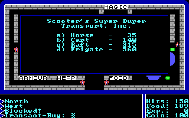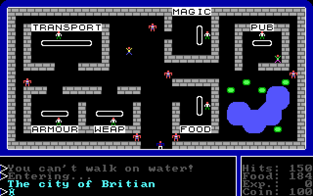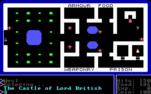 Симпатичная тайловая графика стала шагом вперед по сравнению с условной рисовкой Akalabeth. Еще красивее игра стала выглядеть в официальном римейке от Origin в 1986 году, который, собственно, и представлен на нашем сайте. Для любознательных - первая версия игры вышла на Apple II на рубеже 1980-81 годов.