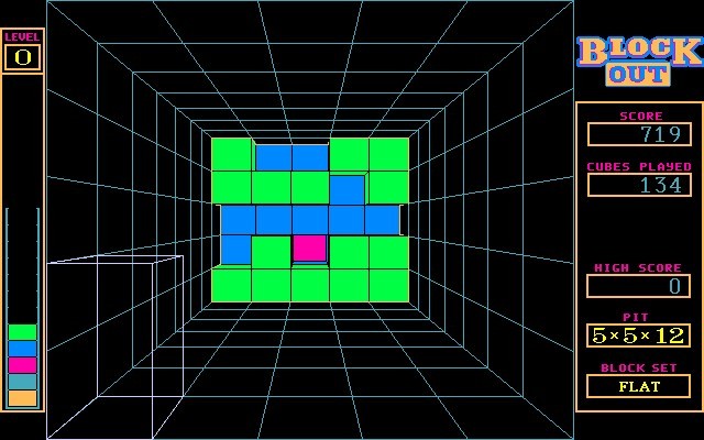Перед вами порт классического трёхмерного польско-американского тетриса Blockout (1989, DOS) на японские ПК семейства PC-98. Данная версия в плане геймплея и звука являет собой тот же оригинал, однако графика была ощутимо переделана. Повысилось разрешение экрана, изменились общая палитра, внешний вид менюшек, попутно стало доступно два режима – 8 и 16 цветов.